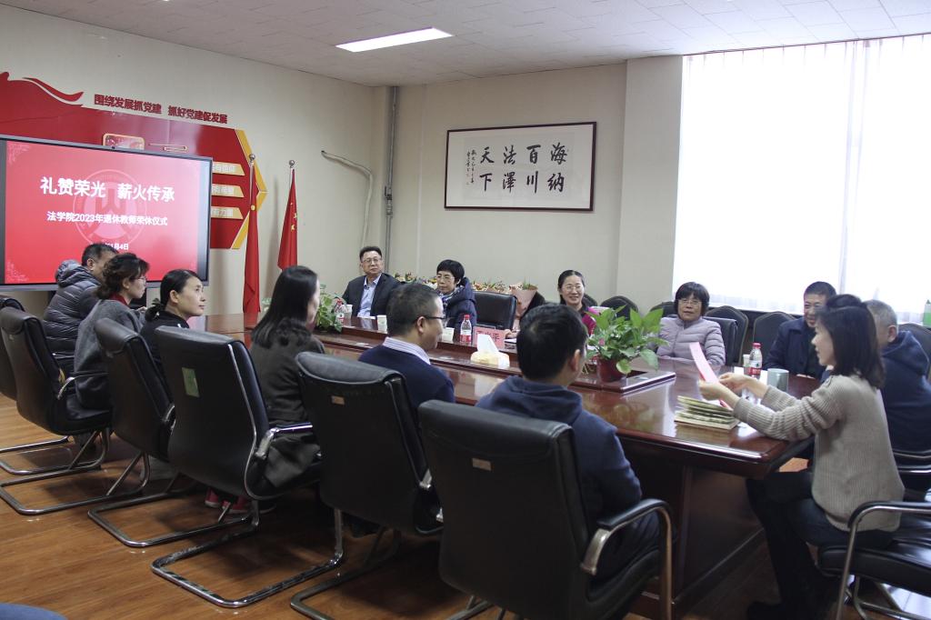 为表达对教师的关怀、关爱,对教师职业生涯奉献的感谢,增强教师职业荣誉感、认同感、归属感,2024年1月4日下午,bat365举行2023年退休教师荣休仪式。退休教师闫宝龙、王春婕、何翠凤、于忠翔受邀参加仪式,离退休工作处党委书记于光平、学院党委书记危红、院长赵信会、党委副书记田军、沙林斌、学院副院长王莉莉、学院工会主席李同武、学院工会副主席赵晗以及各系教师代表、青年教师代表共同见证了这一光荣时刻。