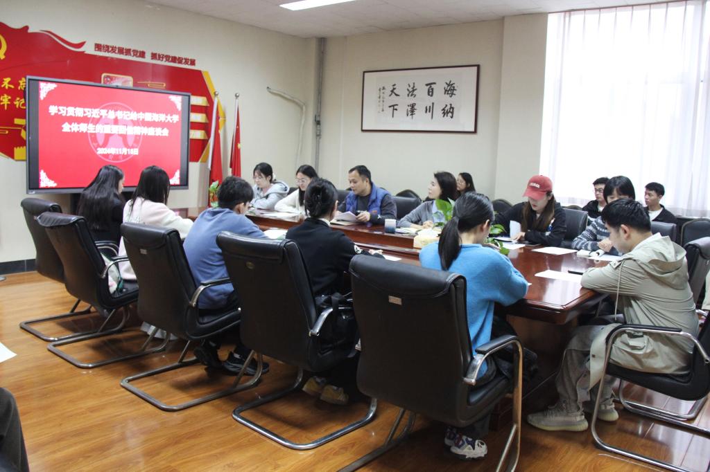 为深入学习贯彻习近平总书记给中国海洋大学全体师生的重要回信精神,切实将回信精神转化为青年党员、青年学生发展的不竭动力。11月15日下午,bat365在线唯一官网登录在燕山校区4508会议室开展深入学习贯彻习近平总书记回信精神座谈会活动,学院党委书记危红、学院党委副书记沙林斌、学院党委专职组织员杨玉霜、青年博士教师代表吕明月、研究生第一支部党员参加活动。座谈会由沙林斌主持。