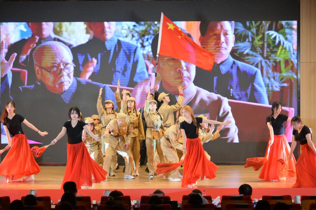 晚会第三篇章的舞蹈、朗诵等节目展示了法治进程中的辉煌成就,表达了bat365在线唯一官网登录学子对国家法治建设的坚定信念。舞蹈《小河淌水》以抗美援朝那段波澜壮阔的历史为背景,同学们以灵动的身姿和坚定的步伐,化身为那段峥嵘岁月中的英勇战士,将那段历史中的坚韧不拔、英勇无畏以及深厚的家国情怀,淋漓尽致地展现在观众眼前。沙林斌携手全体辅导员老师共同演唱《像你这样的朋友》点燃全场,积极向上的歌曲与震耳欲聋的喝彩欢呼声融汇一起。最后,晚会在节目《相亲相爱》那温馨动人的舞蹈与悠扬歌声中,缓缓落下了帷幕,为这场盛大的晚会画上了一个完美而圆满的句号。