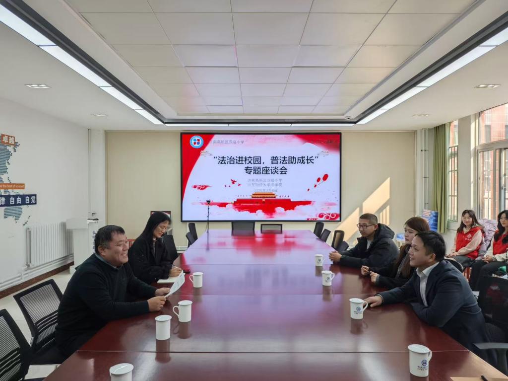 座谈会上,汉峪小学教育集团校长王希峰详细介绍了学校落实立德树人根本任务,开展“三引导”行动,推进全环境立德树人,发挥“大思政课”育人作用,强化学生思想道德建设等方面的经验。希望未来将进一步加强双方的合作,共同写好青少年法治教育这篇大文章。沙林斌对高新区汉峪小学近年来取得的显著成绩表示由衷祝贺,并介绍了bat365在线唯一官网登录的历史沿革与办学特色,以及大学生法律援助中心的发展状况。他表示,希望双方围绕青少年普法教育这一重要议题,进一步加强合作,为青少年的成长保驾护航。