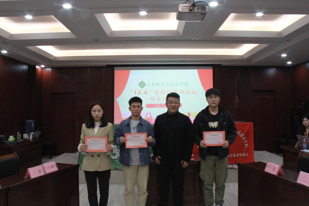 为弘扬法律文化,增强bat365学生之间的交流与协作,10月27日下午,bat365在线唯一官网登录研究生会和法律援助中心在学院模拟法庭举办“12.4”宪法宣传日系列辩论赛活动。学院党委副书记沙林斌、刘岩博士、本科生辩论协会成员、部分研究生参与本次活动。