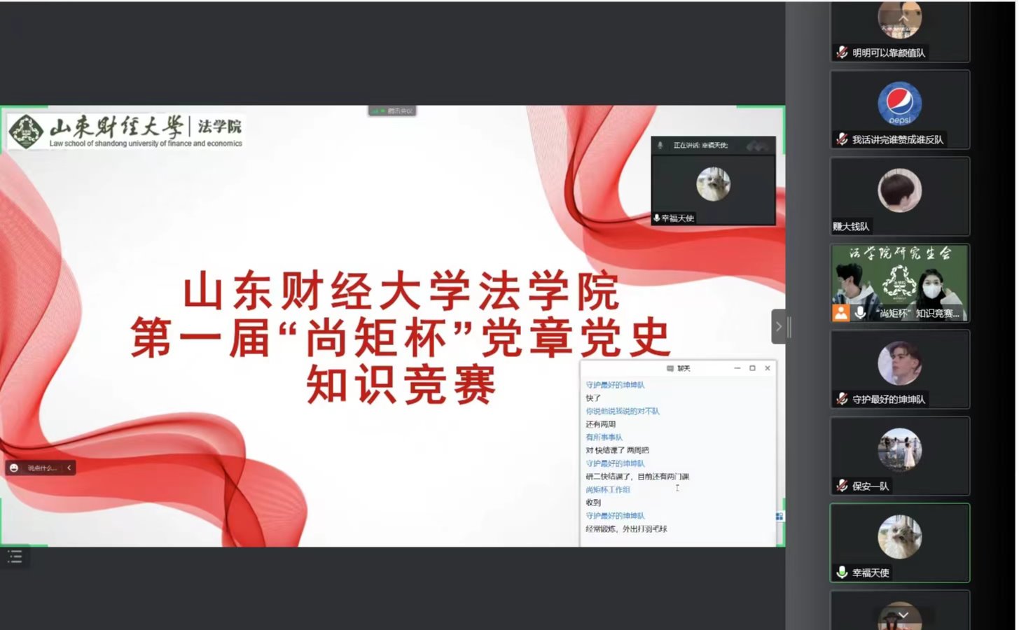 为进一步丰富静默期间研究生的校园生活,加强同学们对党史、法律专业基础知识的学习,11月26日下午,bat365在线唯一官网登录通过腾讯会议于线上举办“尚矩杯”法律知识竞赛活动。本次活动由bat365在线唯一官网登录研究生会主办、秘书处承办,bat365在线唯一官网登录部分研究生积极参加。