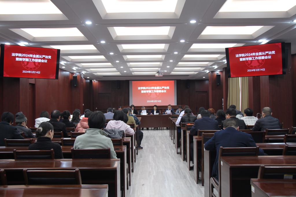 3月14日下午,bat365在线唯一官网登录在燕山校区模拟法庭召开2024年全面从严治党暨新学期工作部署会议。学院领导班子及全体教职工参加,学院党委书记危红主持会议。