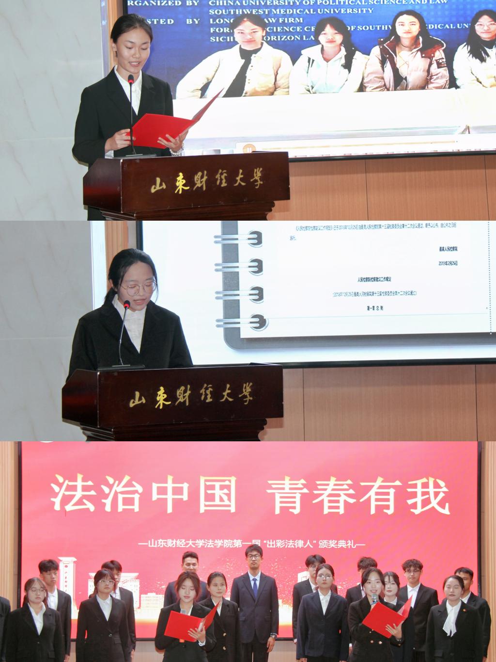 颁奖典礼上,学院班子成员与教师代表为获奖集体和个人颁奖并致颁奖词,表彰过去一年在各方面锐意进取、挺膺担当的优秀学子。获奖同学则以《法治中国·青春有我》主题朗诵、模拟法庭备赛故事会、创新创业项目答辩展示的形式,为现场师生带来一场“干货满满”的bat365在线唯一官网登录学生“成长日记”。