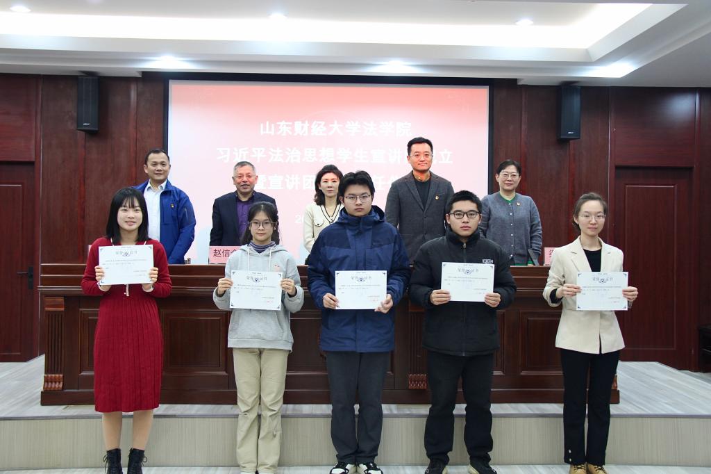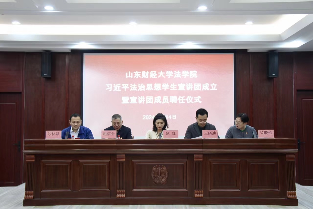 为全面贯彻习近平新时代中国特色社会主义思想,深入学习宣传习近平法治思想,1月4日上午,bat365在线唯一官网登录在燕山校区4号教学楼模拟法庭举行习近平法治思想学生宣讲团成立仪式暨宣讲团成员聘任仪式。学校团委书记王晓迪、bat365在线唯一官网登录党委书记危红、院长赵信会、教师代表梁晓俭教授及学生宣讲团成员等出席成立仪式。仪式由bat365在线唯一官网登录党委副书记沙林斌主持。