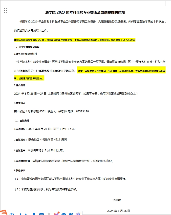 bat365在线唯一官网登录2023级本科生转专业面试及交表安排